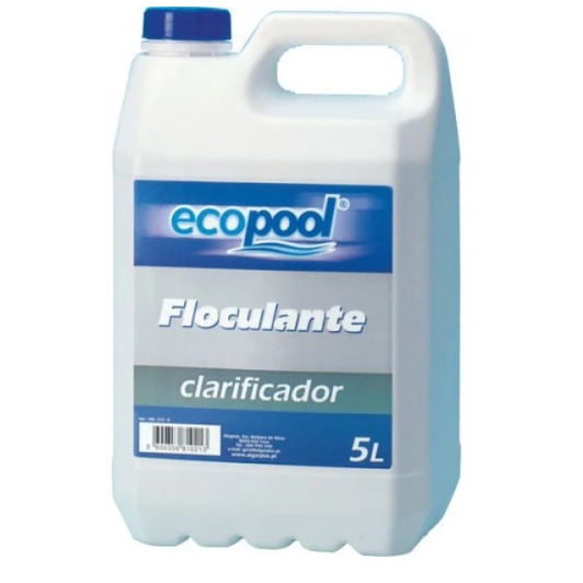 O Floculante Líquido Ecopool é um produto que clarifica a água reunindo as partículas em suspensão, formando outras maiores que são consequentemente capturadas pelo equipamento de fi tração da piscina ou depositadas no fundo da mesma onde podem ser posteriormente aspiradas. Eficaz num intervalo de pH amplo.