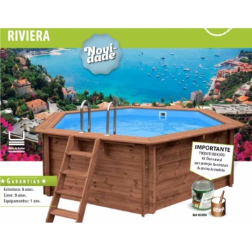 A A piscina de madeira Riviera, com um design hexagonal, destaca-se pela sua estética ideal para crianças e adultos. Fabricada na Europa em madeira de pinho silvestre oriunda da Escandinávia e Báltico com tratamento especial autoclave exterior classe IV.