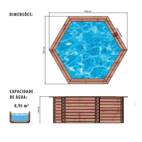 Piscina de Madeira Hexagonal RIVIERA 434x116